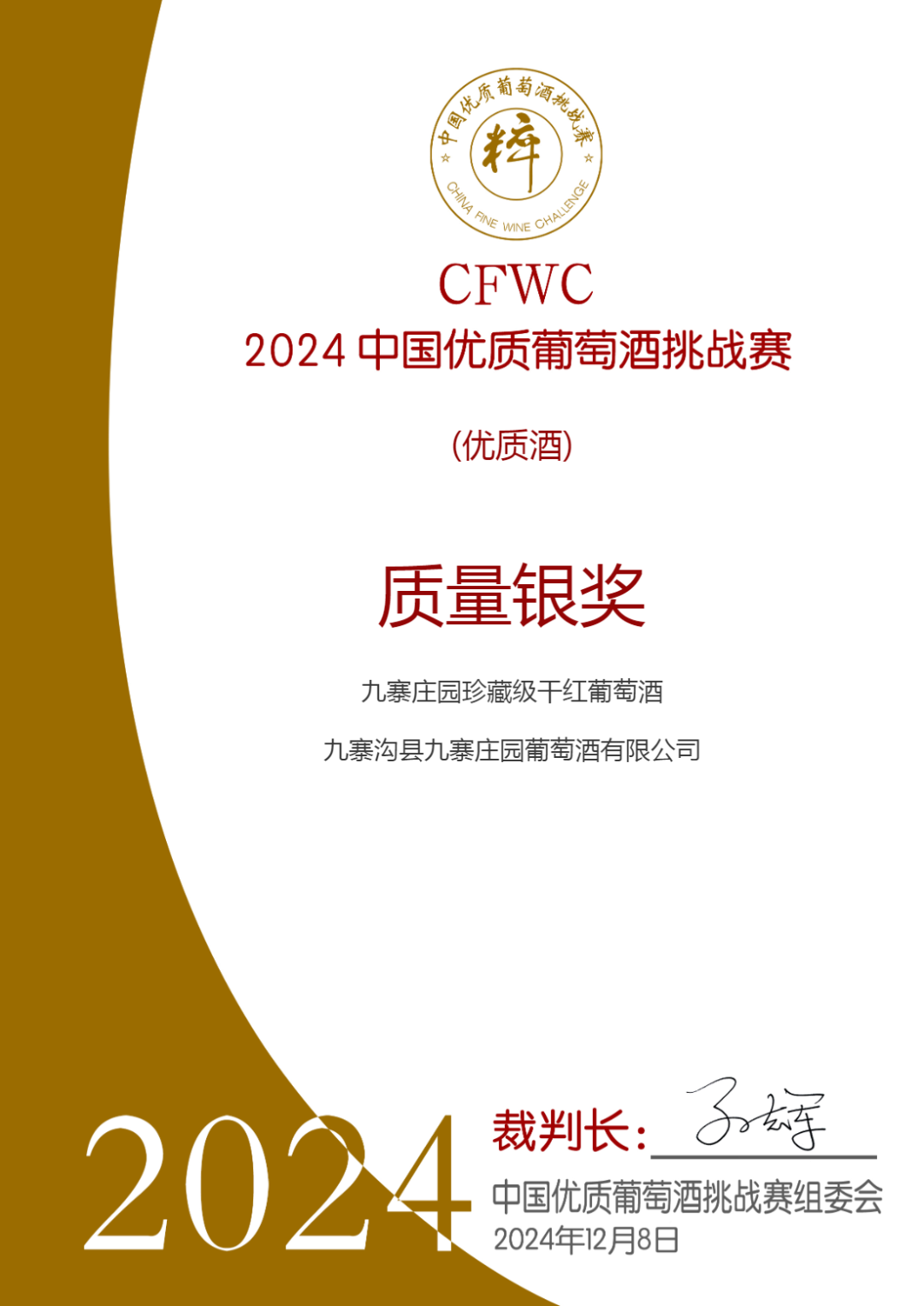 喜報 | 九寨莊園葡萄酒榮獲2024年中國葡萄酒優質質量獎